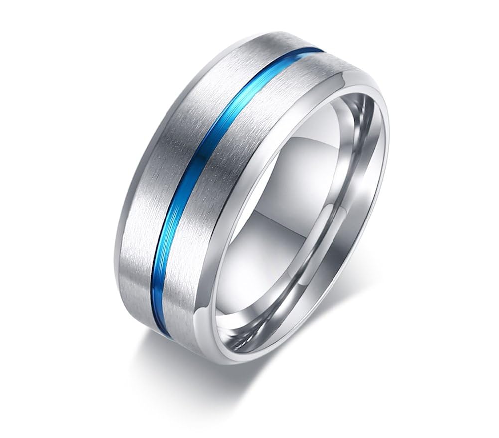 Personalized Men S Wedding Band Blue Line Center Groove Stainless Steel Think Engraved