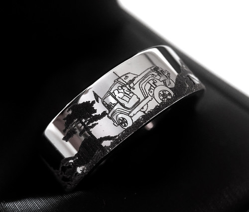 Men S Wedding Band Jeep Wrangler Pattern Custom Engraved Mens Tungsten Ring Lunamur
